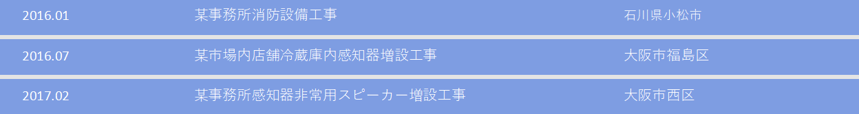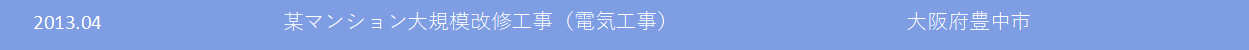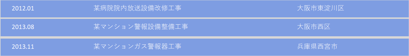 | 建設業許可 | 大阪府知事(般-6) 第162047号 電気工事業・消防施設工事業 |