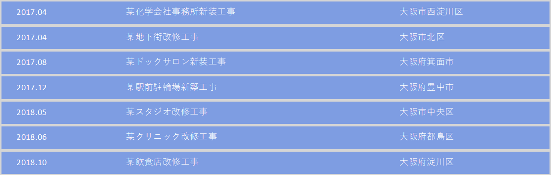 過去の施工実績の一部を掲載しております。